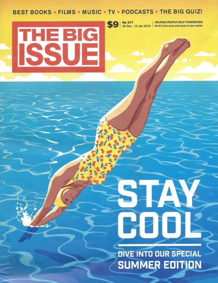 ‘Nice to be in the final Big Issue of 2018 (and the first of 2019) with a little yarn about the perils of a Pomeranian pet being on the field during backyard cricket. Edition 577. 26 December 2018 to 10 January 2019. Available from your local vendor for $9. Cheers.