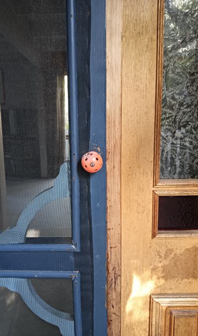 The silent handles of the fly-wire door are orange plastic practice golf balls which our father may have struck at the beach at low tide. In his latter years, especially those seven after Mum died, he played nine holes of golf on Tuesdays at a course 40 minutes away. Not a flash, fancy golf course by any stretch of the fairway’s imagination. A flat course bordered by flat farmland.